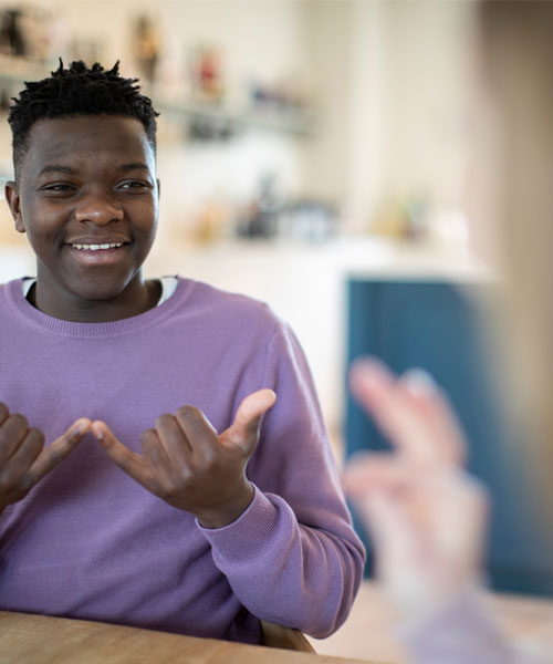 Language takes many forms. It can be oral, but also gestural, written, pictorial, drawn, in the form of pictograms or photos. We have the ability to help find a way to get their messages across.